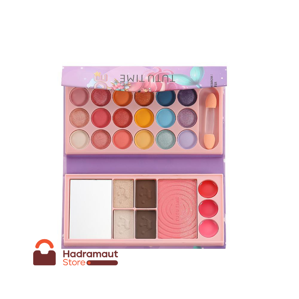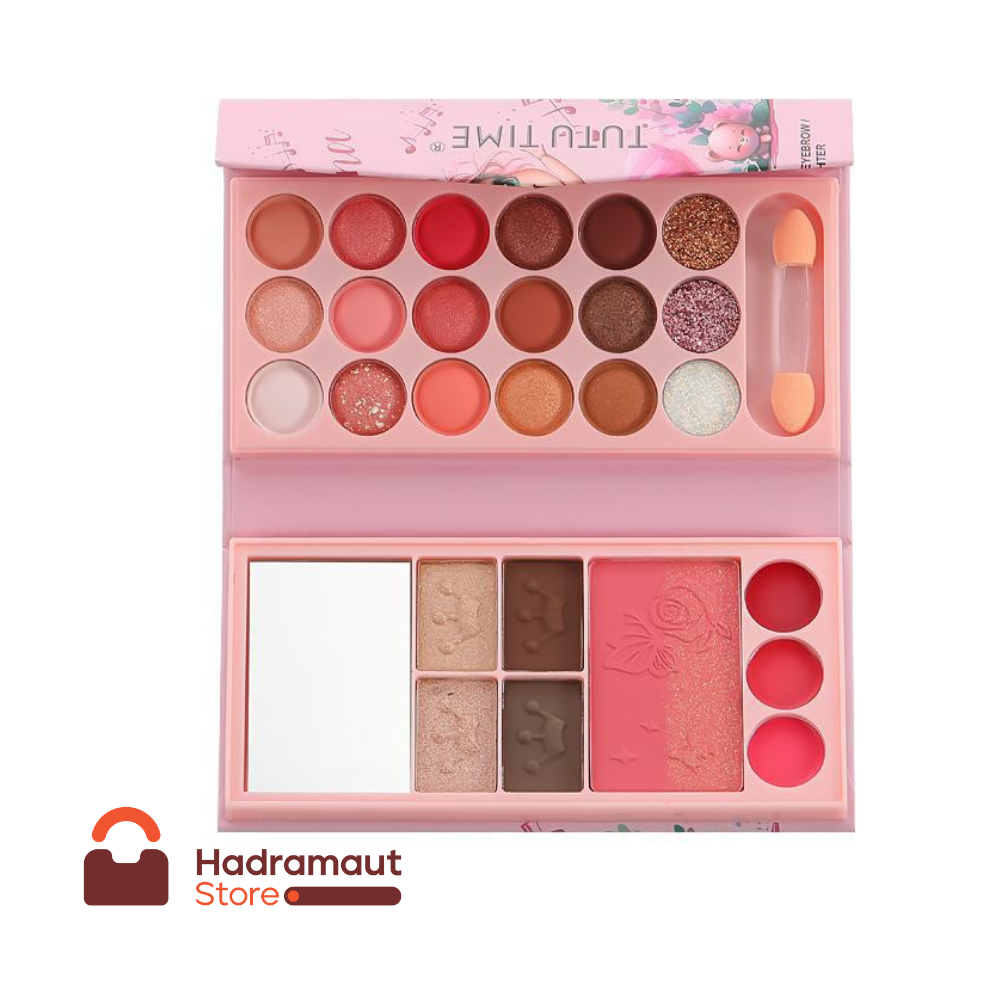 TUTU TIME باليت مكياج شامل يحتوي على ظلال عيون وأحمر خدود وهايلايتر.