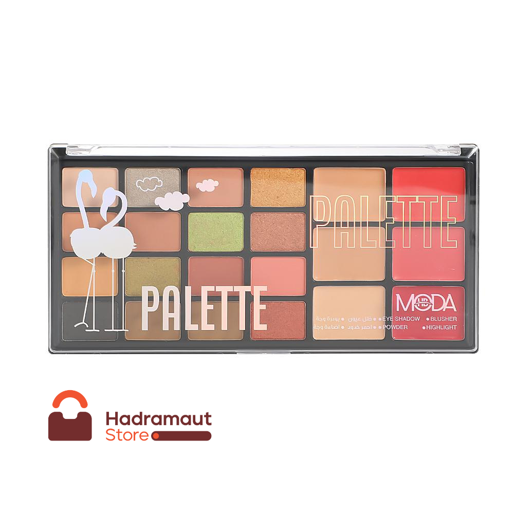 الباليت مودا بيوتي تحتوي من ظلال العيون والبلاشر والبودرة والهايلايتر، مناسبة لجميع أنواع البشرة